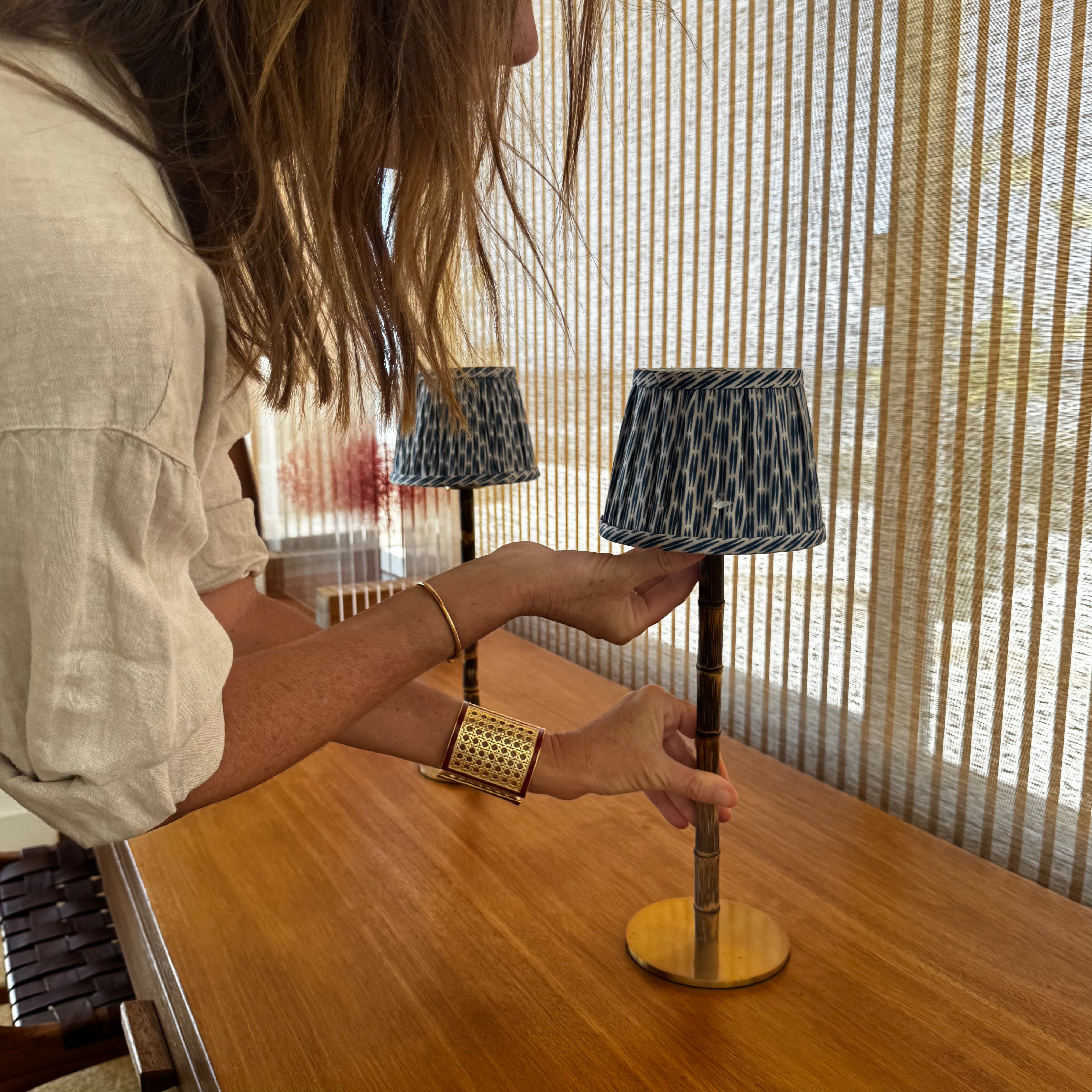 The Beth bamboo lamp is a cordless table lamp crafted from natural bamboo and paired with a soft fabric shade, designed to bring warmth, texture, and inviting ambient light to any space.