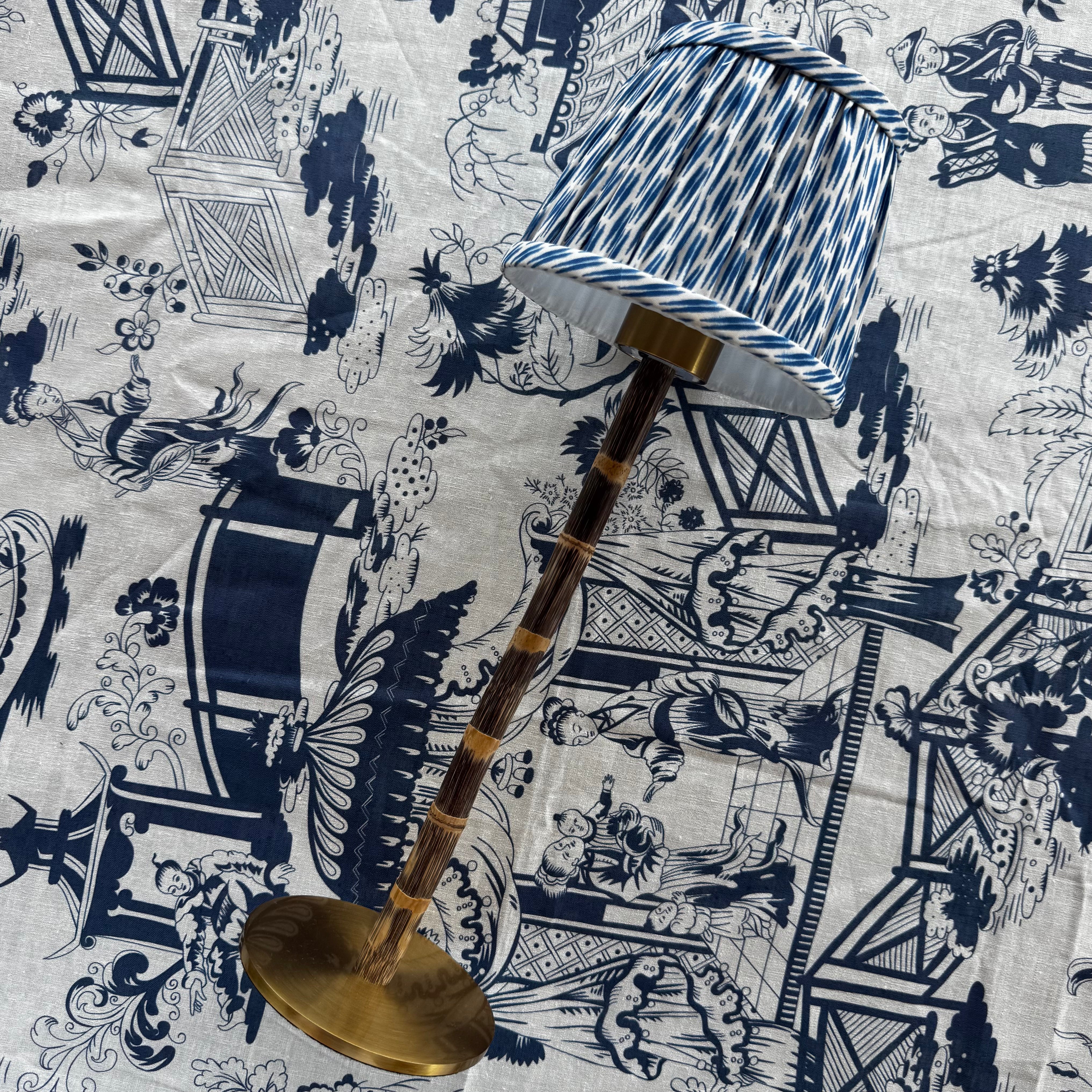 Materials: Bamboo base with fabric shade