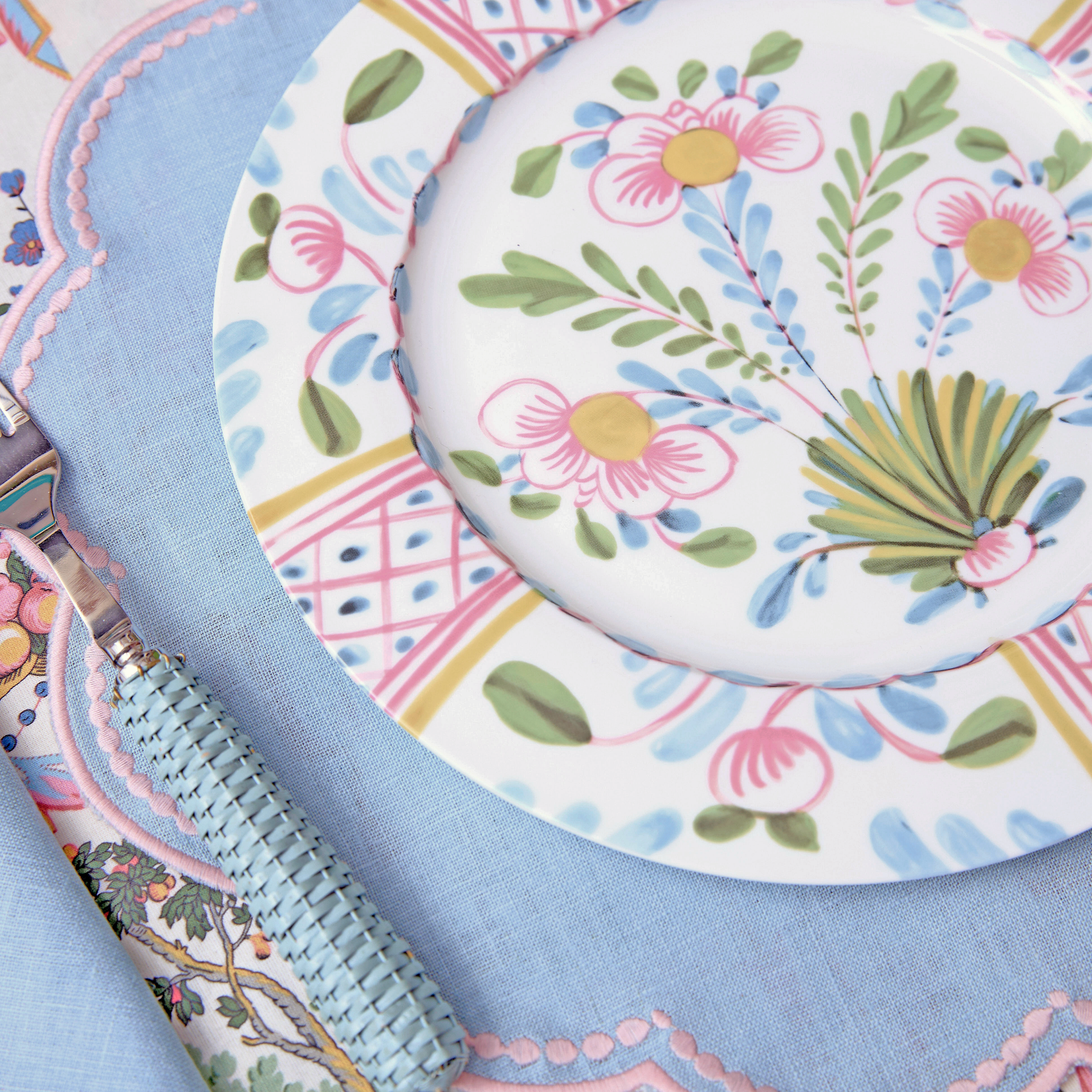The Sorrento dessert plates are one of Duggan Society’s exclusive best-selling designs, inspired by the relaxed elegance and soft pastel beauty of the Amalfi Coast. Their timeless Italian-inspired pattern brings warmth, color, and effortless charm to beautifully styled tables.