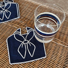 The Sailor cocktail napkins feature a charming embroidered sailor jacket motif that brings coastal elegance, personality, and playful nautical charm to cocktail hours and entertaining moments.