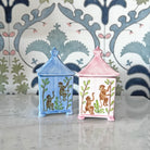 Hand-painted in Italy, this whimsical ceramic pagoda candles features playful monkeys and lush greenery. A collectible piece that brings charm and craftsmanship to any table or corner.
