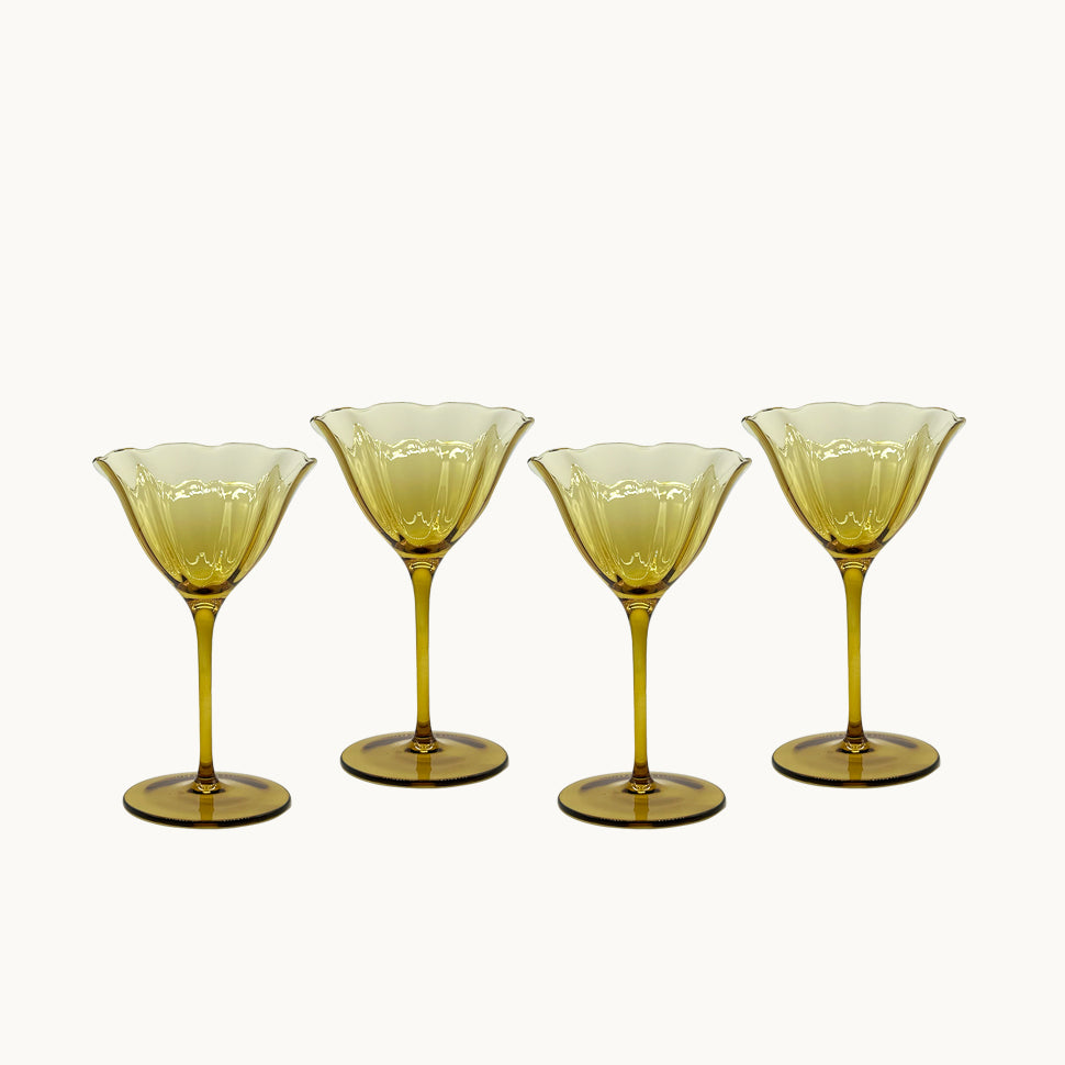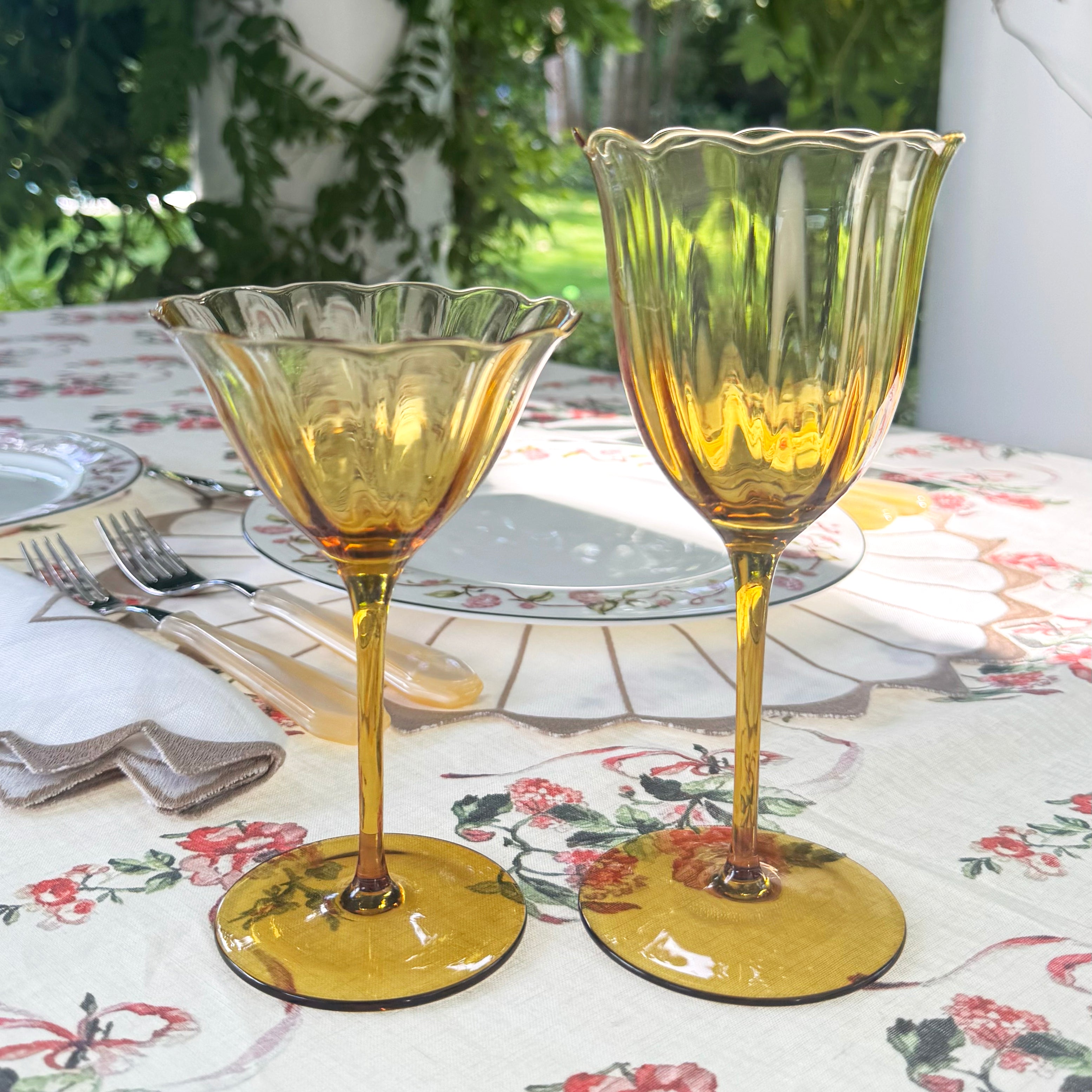 Our chic amber water glasses are elegant and versatile. Made of delicate glass they can elevate any table. (set of 4)