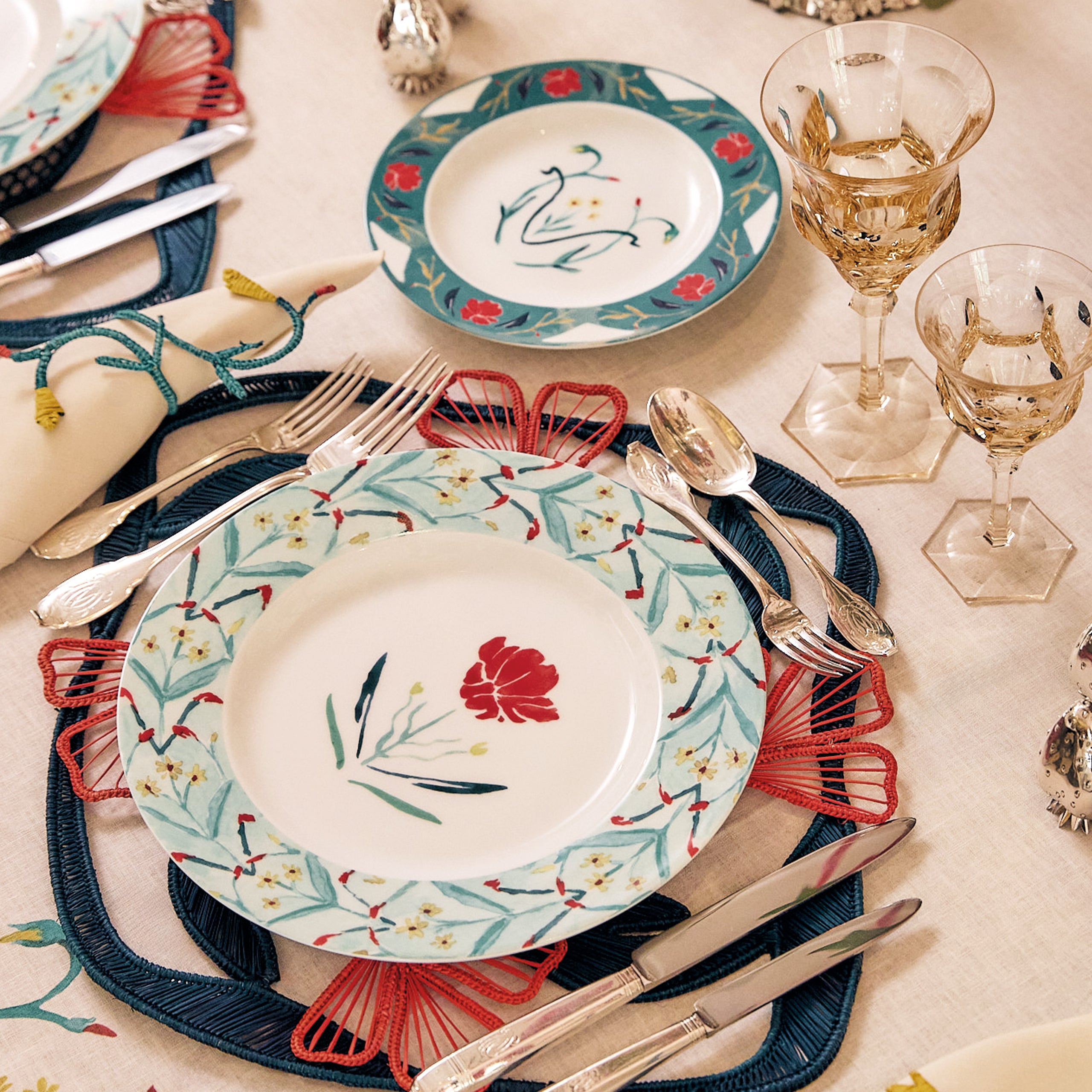 Made of high porcelain this 8 inches plate inspired in the art nouveau is a sophisticated addition to you dinnerware collection.