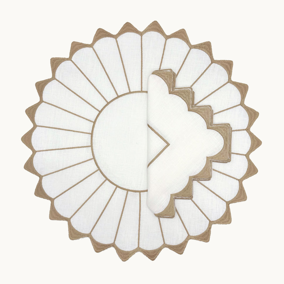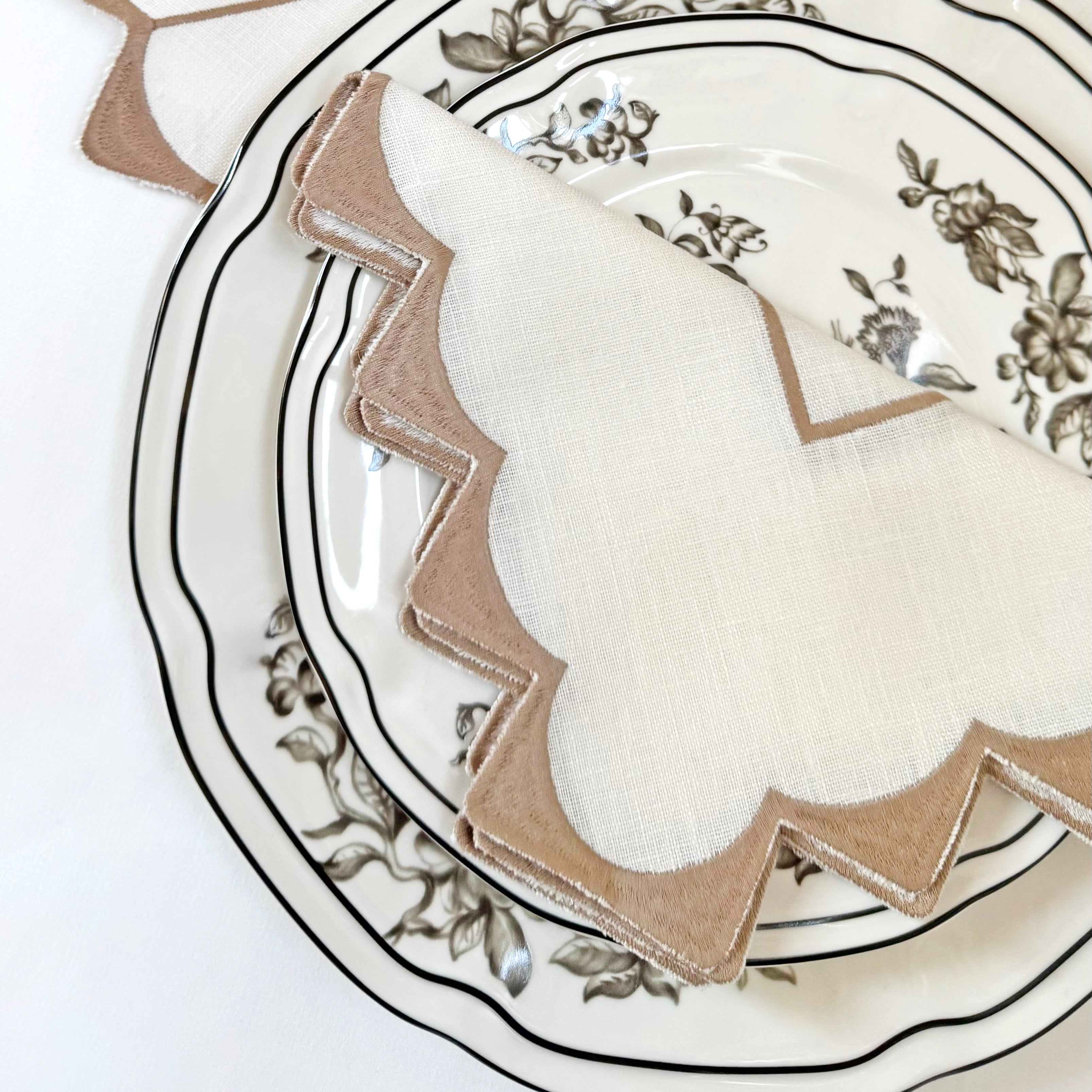 Napkins crafted in 100% linen, featuring delicate embroidery.