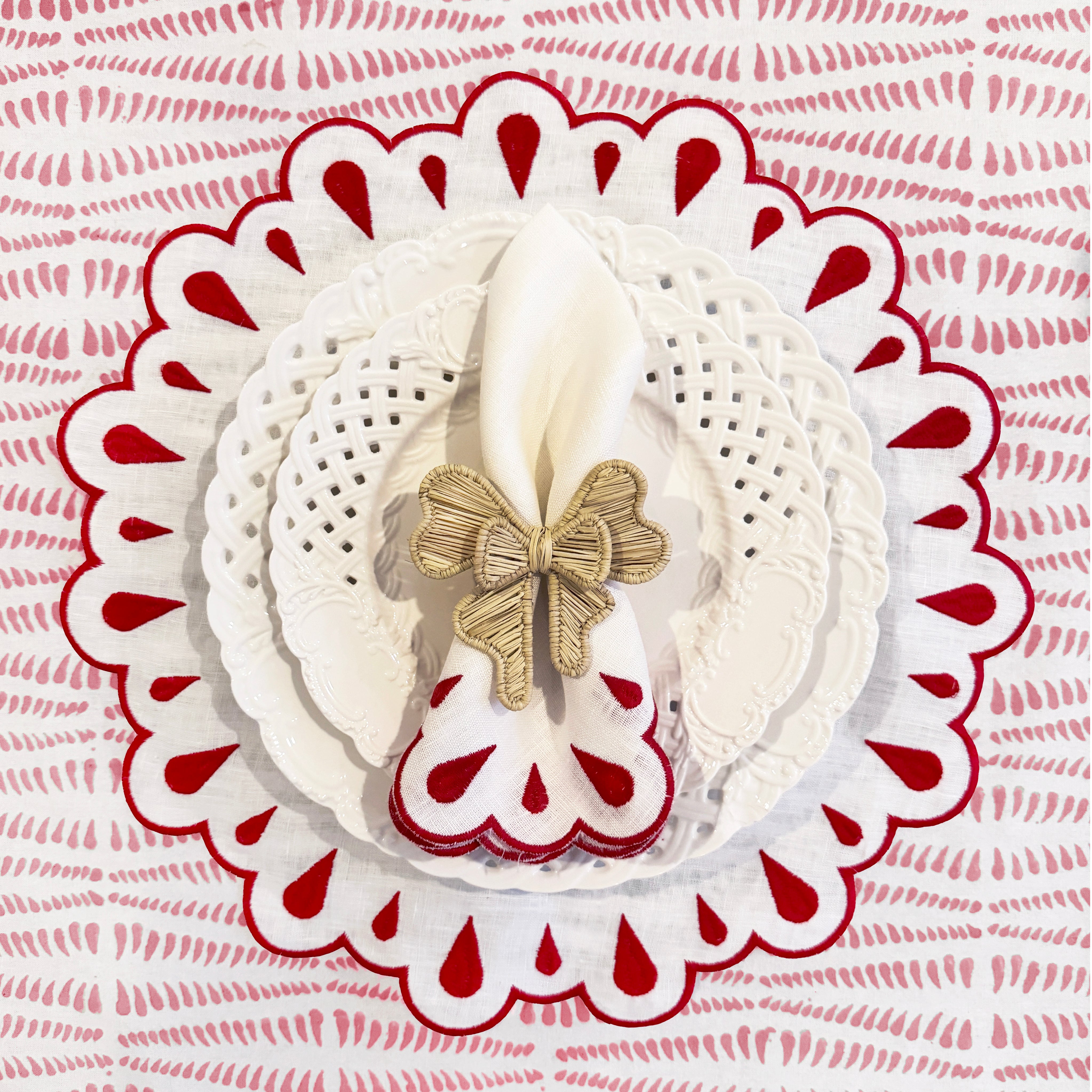 Our block-printed table linens add a modern punch of joy and color to sophisticated dinner settings or casual weekday lunches.