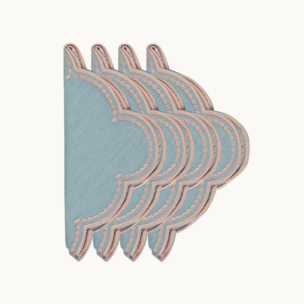 Our specially designed 100% linen white placemats featuring elegant embroidery and scalloped edges, perfect for enhancing any table setting. Hand- dyed by skilled artisans, each of our placemats may have a slight variation in color making them even more captivatingly unique.