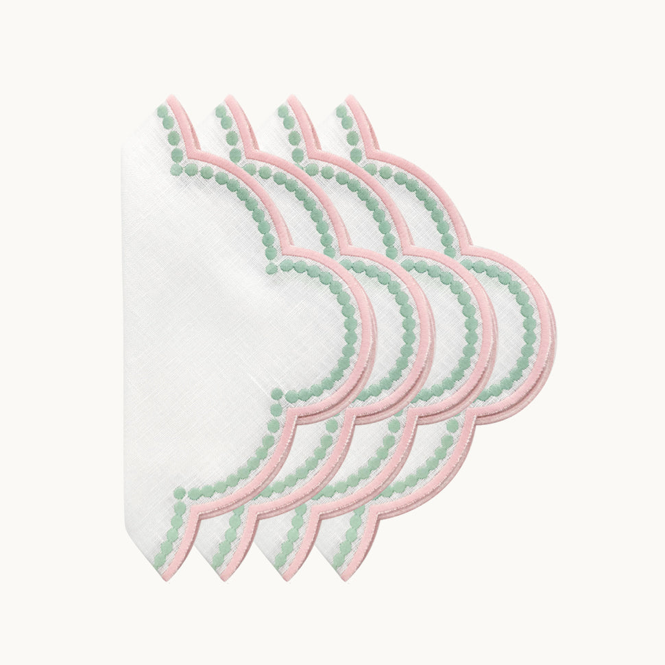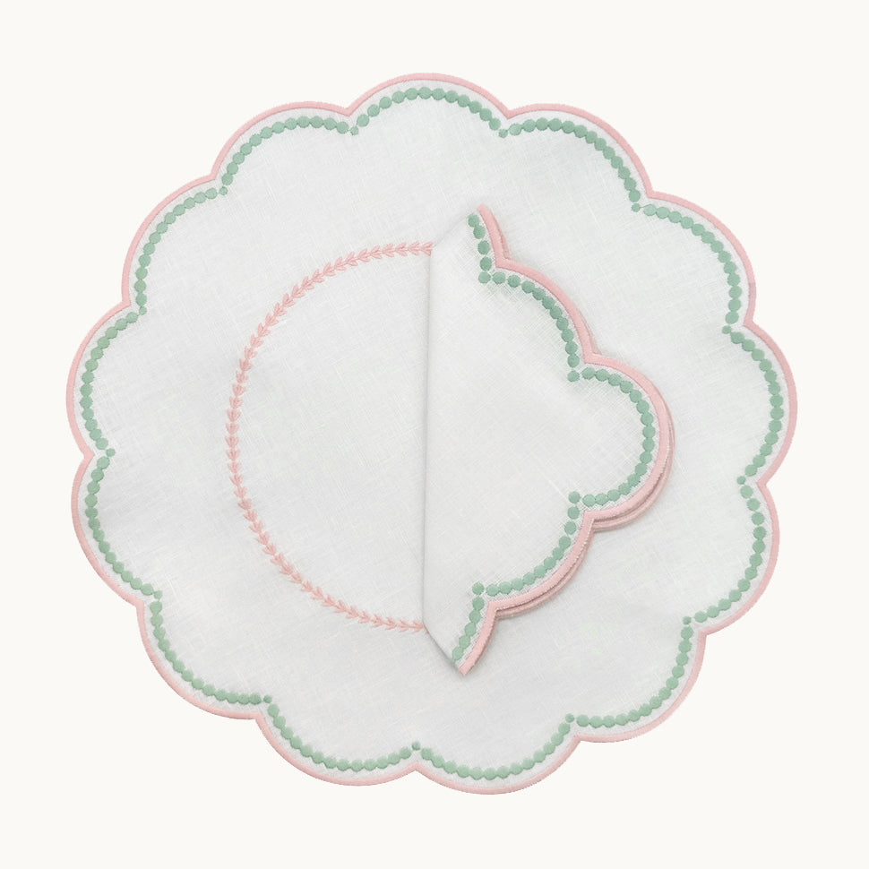Our specially designed 100% linen placemats featuring elegant embroidery in shades of blue and scalloped edges, perfect for enhancing any table setting. (set of 4)