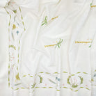 A fresh breeze of coastal elegance, this hand-painted tablecloth features delicate palm trees, tropical birds, and soft green motifs inspired by serene seaside gardens. Crafted in pure cotton, it’s perfect for al fresco dining, beachside lunches, or bringing summer indoors all year round.
