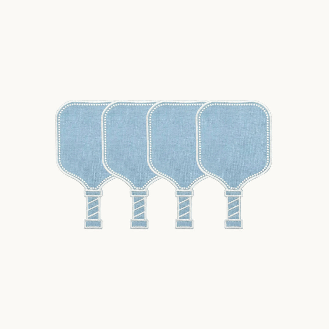 Serve up style with our Pickleball Cocktail Napkins — a fun and fresh addition to any gathering. Shaped like classic pickleball paddles and crafted in soft blue linen, they’re perfect for game day cocktails or sporty-chic soirées. A must-have for any hostess who loves a match on and off the court.
