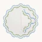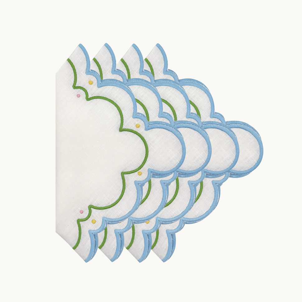 Our Sugus napkins features a double scalloped border in soft candy colors embroider. Elegant yet playful adds charm to any table.