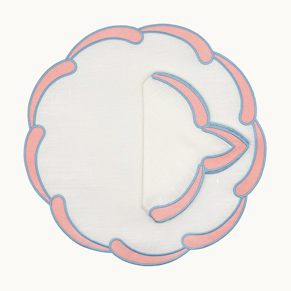 Crafted from 100% pure linen, this elegant placemat features a hand-stitched appliqué design in soft tones, creating a subtle yet sculptural scalloped motif. The layered effect brings dimension and charm to any table setting—perfect for both casual lunches and sophisticated dinners.
