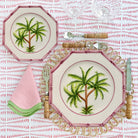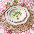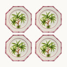 Add a touch of tropical elegance with this hand-painted ceramic plates featuring a palm tree design in delicate relief. Finished with a soft blush octagonal border, they bring a refined tropical touch to any table.