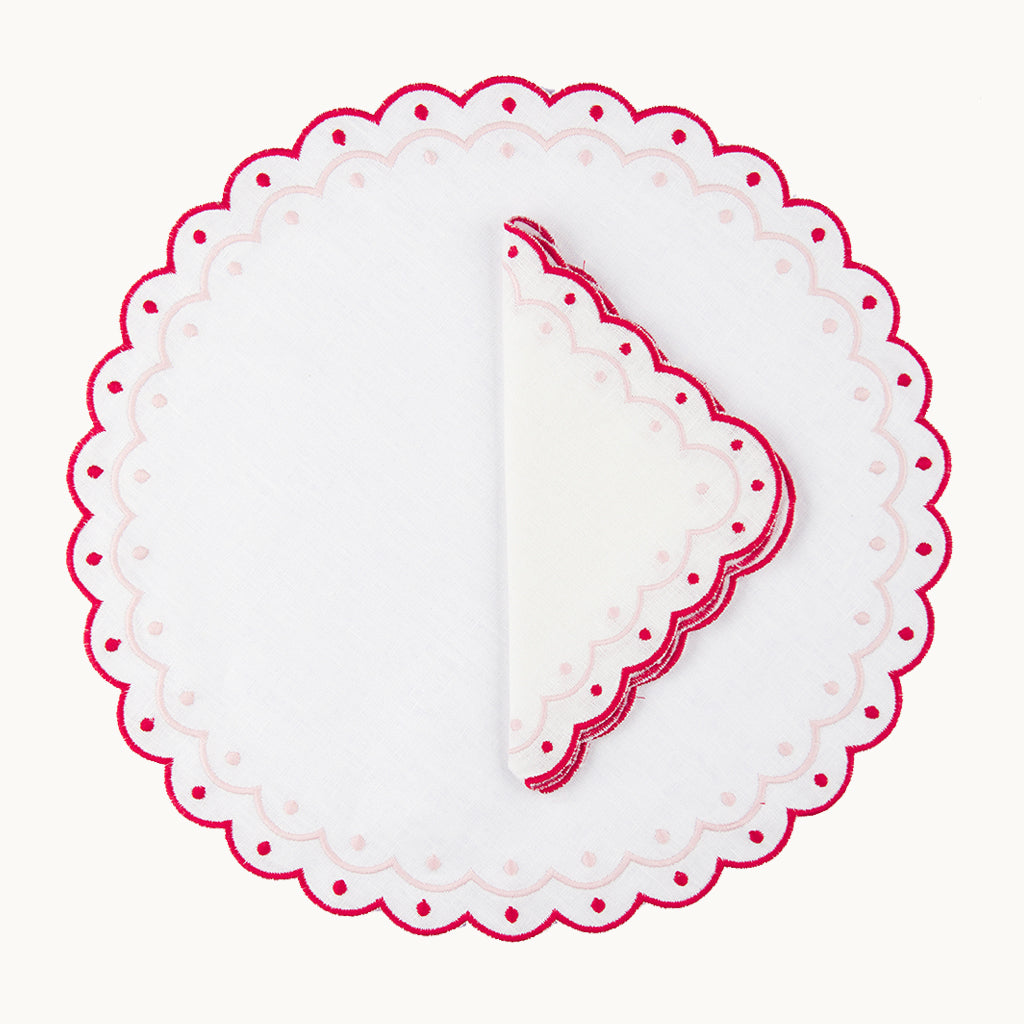 Our specially designed 100% linen white napkins featuring elegant embroidery and scalloped edges, perfect for enhancing any table setting. (set of 4)