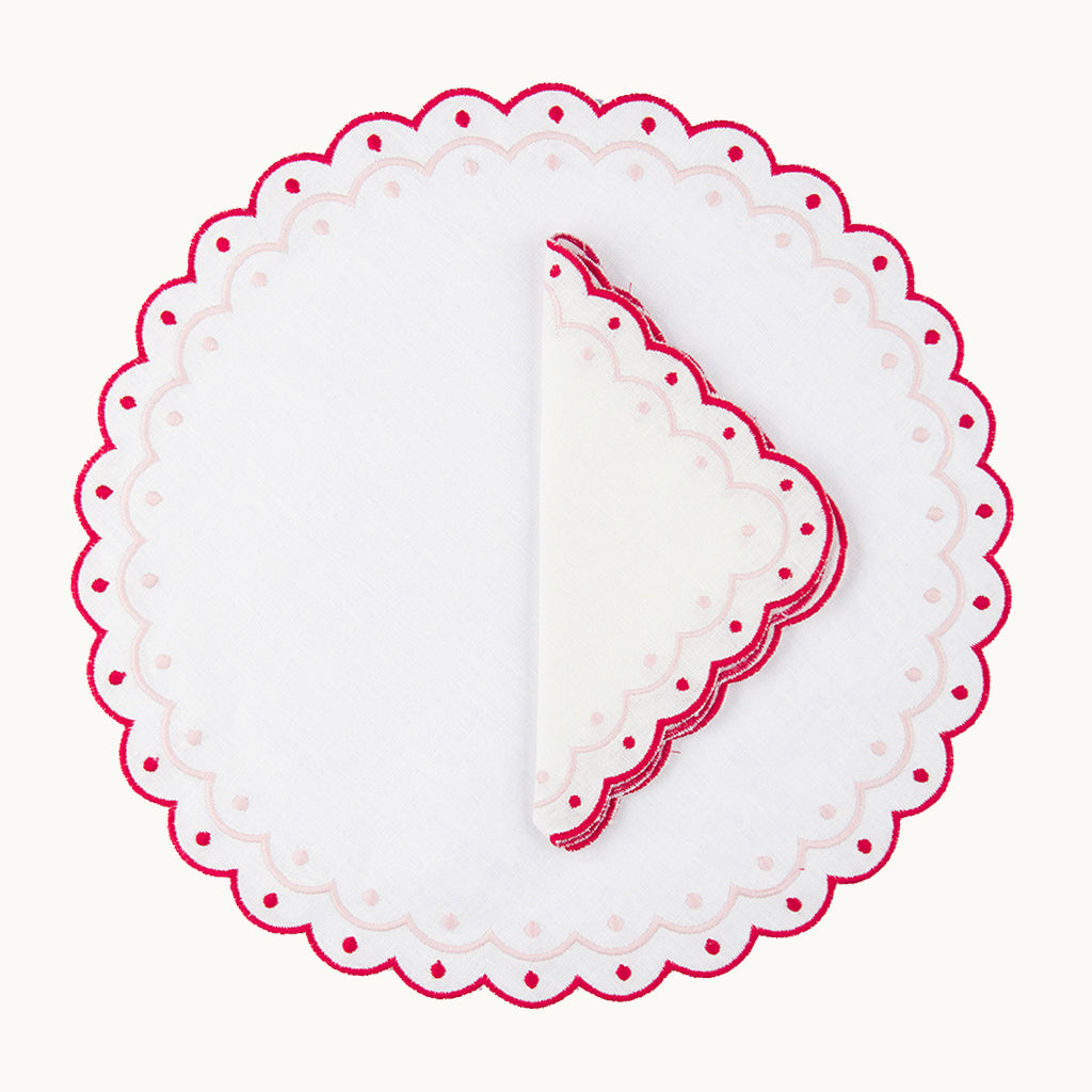 Our specially designed 100% linen white placemats featuring elegant embroidery and scalloped edges, perfect for enhancing any table setting. (set of 4)