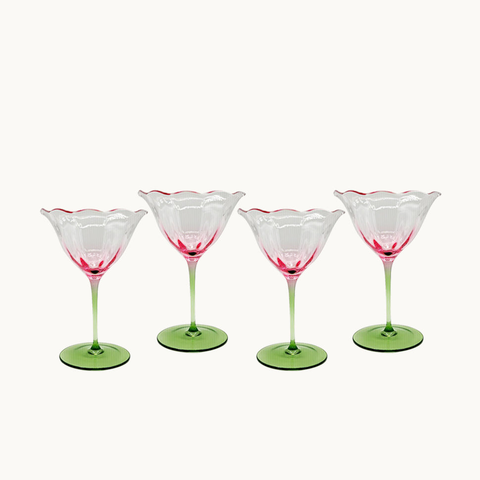 Our chic pink and green water glasses are elegant and versatile. Made of delicate glass they can elevate any table.