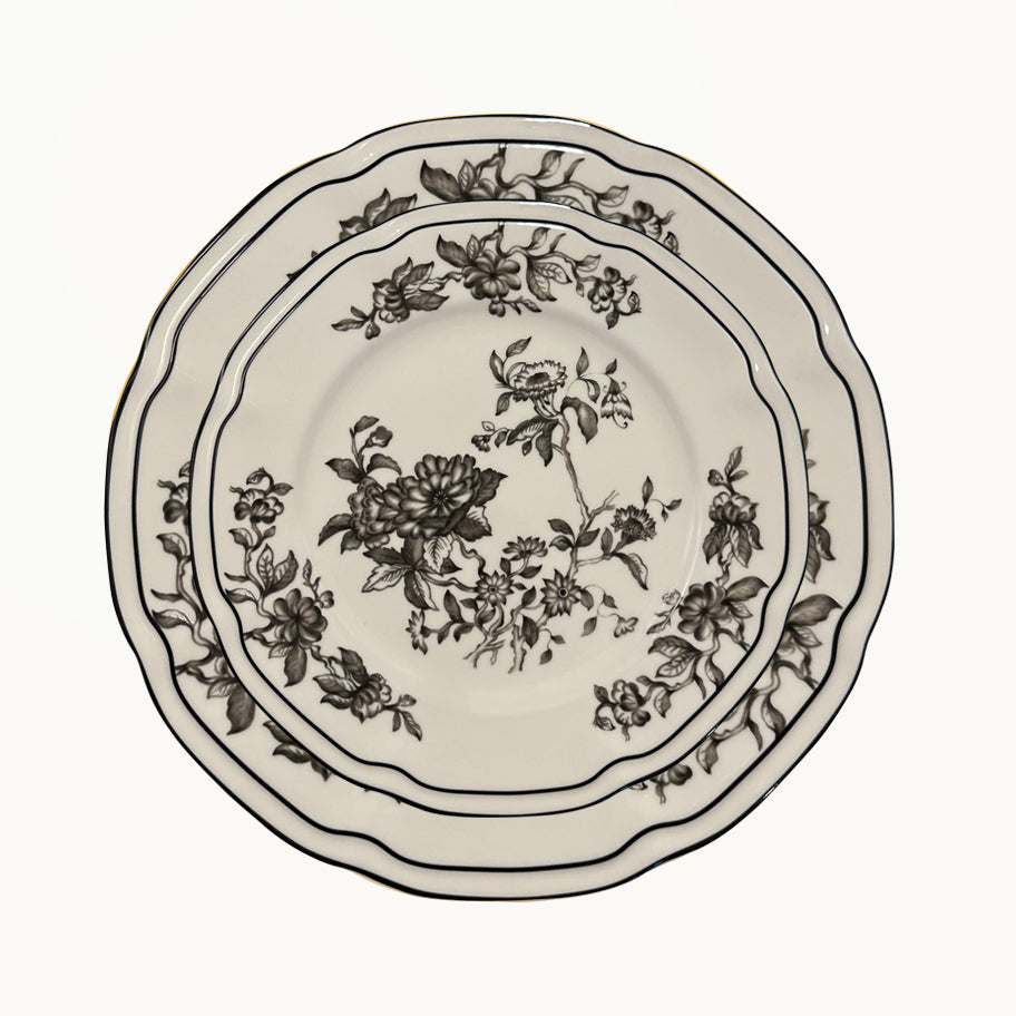 Crafted from fine bone china and designed by Duggan Society, these plates bring timeless elegance to every table. The floral motif adds a touch of classic charm — perfect for both everyday dining and elevated entertaining.