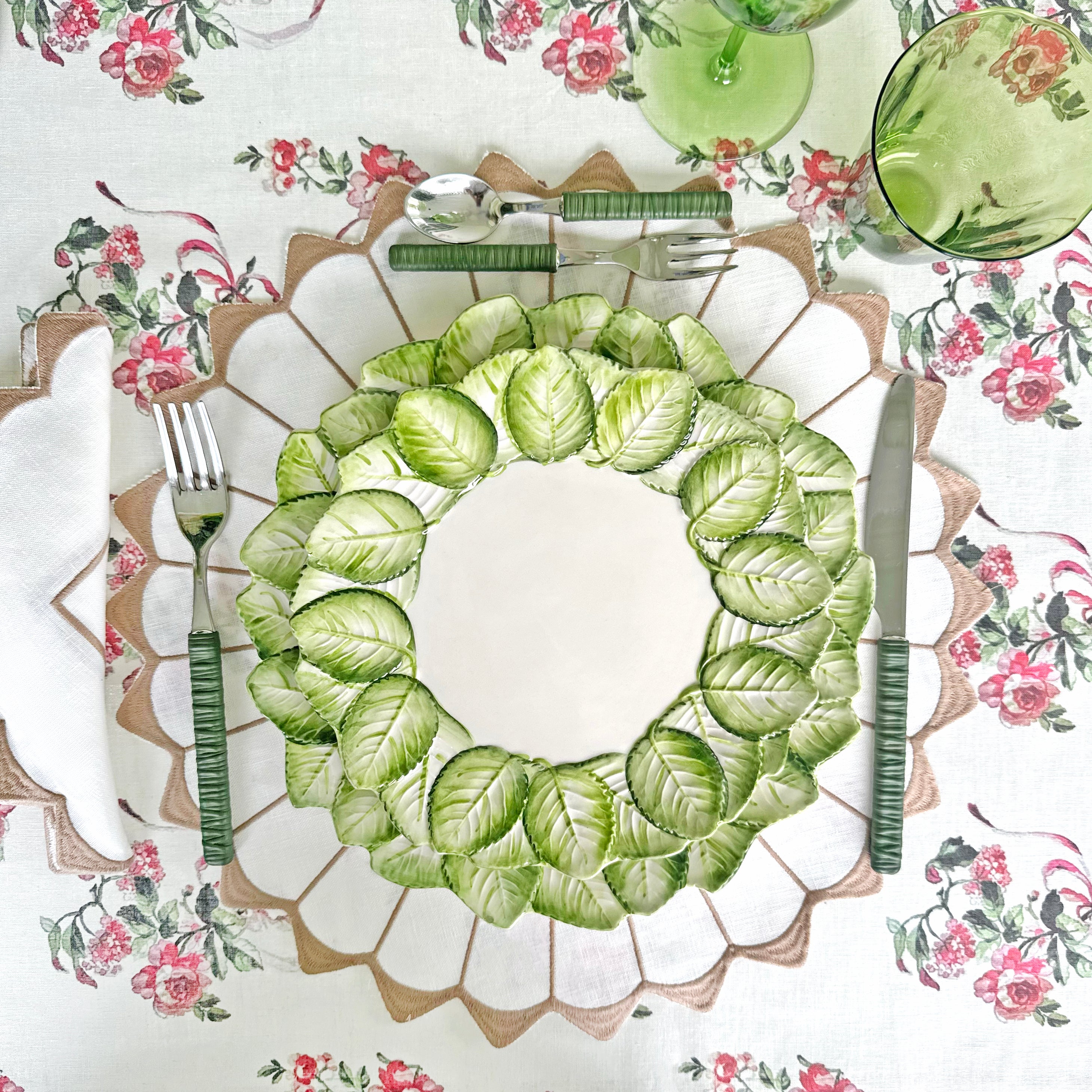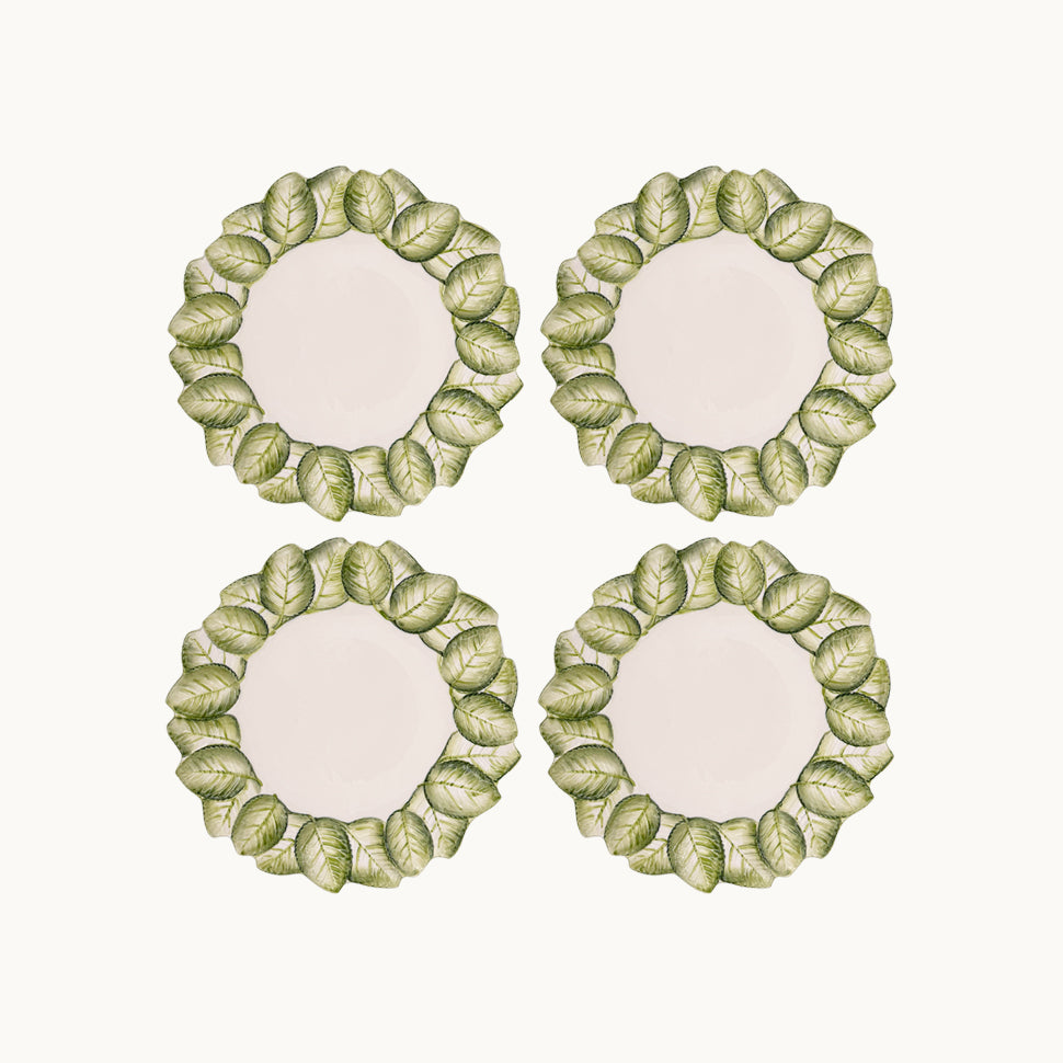 Add a touch of nature's elegance to your table with this exquisite green leaves wreth. ideal for entertaining these plates will bring the freshness of the outdoor to your dining experience making them a must have for those who appreciate fine craftsmanship and natural beauty.