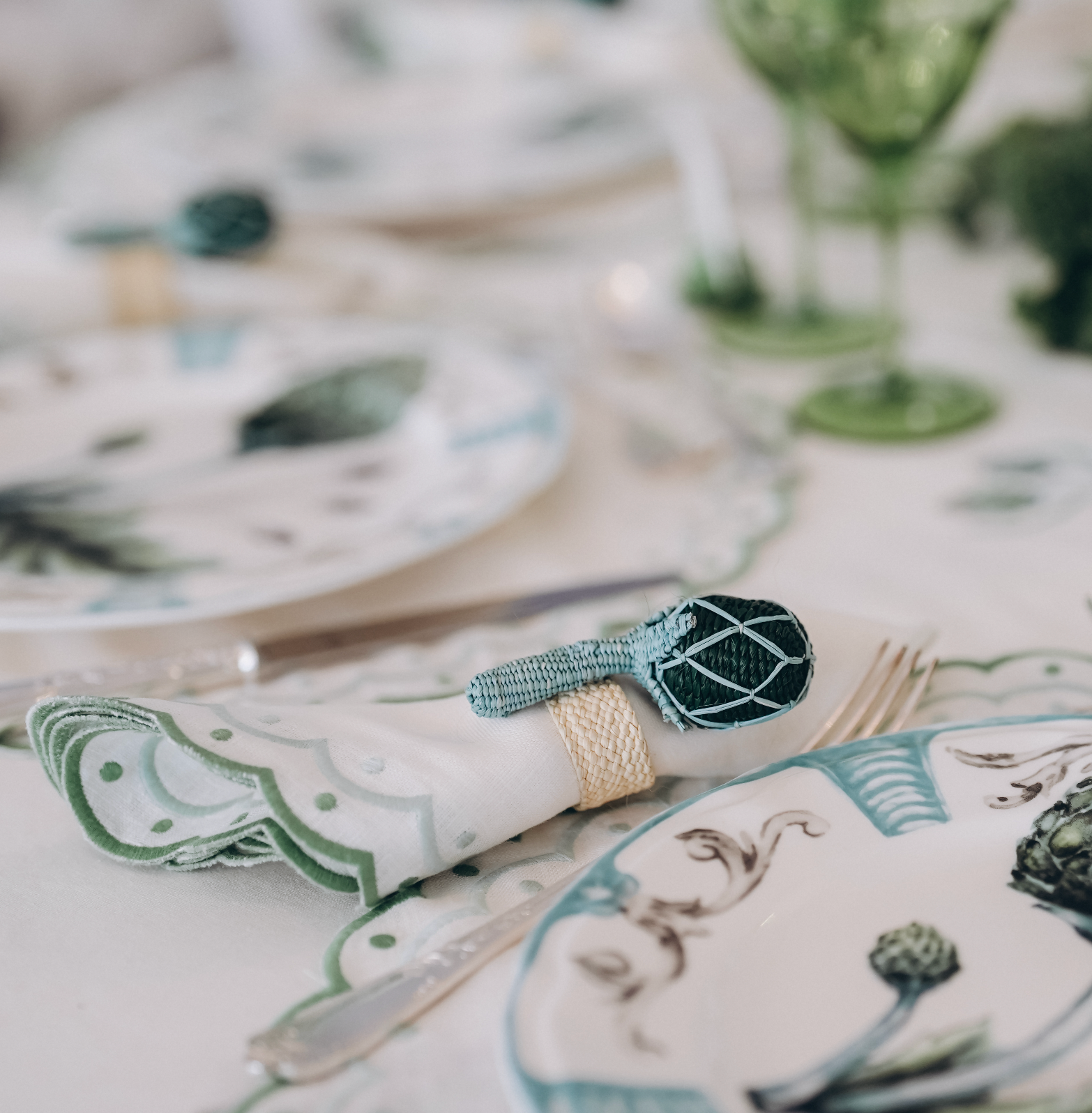 A fresh embroidered accent for beautifully set tables