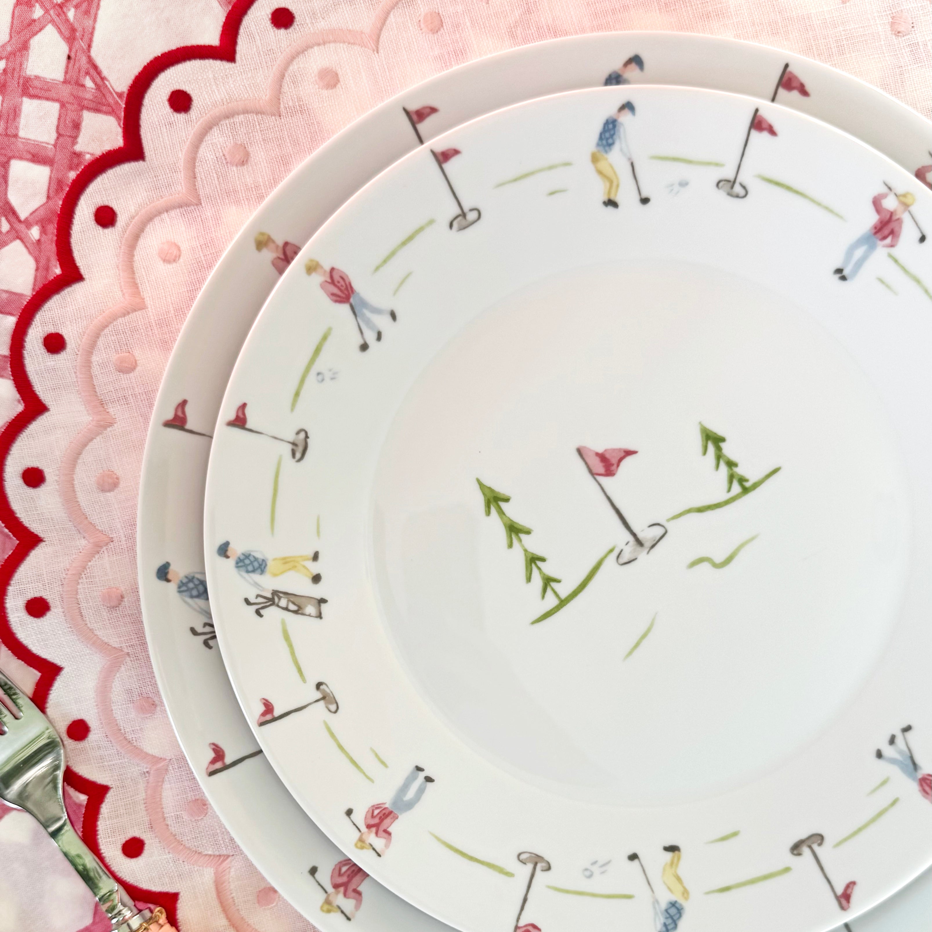 The Golf dinner plates feature an exclusive Duggan Society hand-painted design that brings refined sporting charm and timeless character to beautifully styled tables. Inspired by classic golf aesthetics, this design adds personality while maintaining an elegant and sophisticated feel for entertaining.